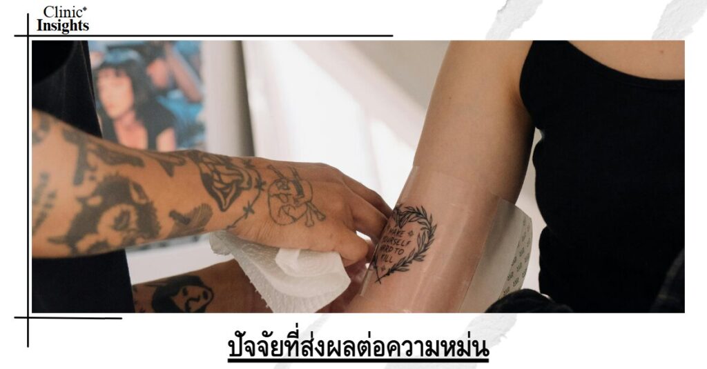 การนวดเบาๆ ใช้ปลายนิ้วนวดบริเวณรอยสักเป็นวงกลมเบาๆ เพื่อกระตุ้นการไหลเวียนเลือดและช่วยให้ผิวหนังปรับตัว