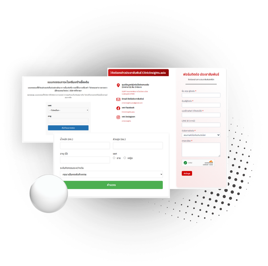 เว็บไซต์คือหน้าร้านออนไลน์ที่เปิดตลอด 24 ชม. ช่วยสร้างความน่าเชื่อถือ ผู้ป่วยหาข้อมูลบริการและติดต่อคลินิกได้ง่ายขึ้น เพิ่มโอกาสในการเข้าถึงลูกค้าใหม่ๆ